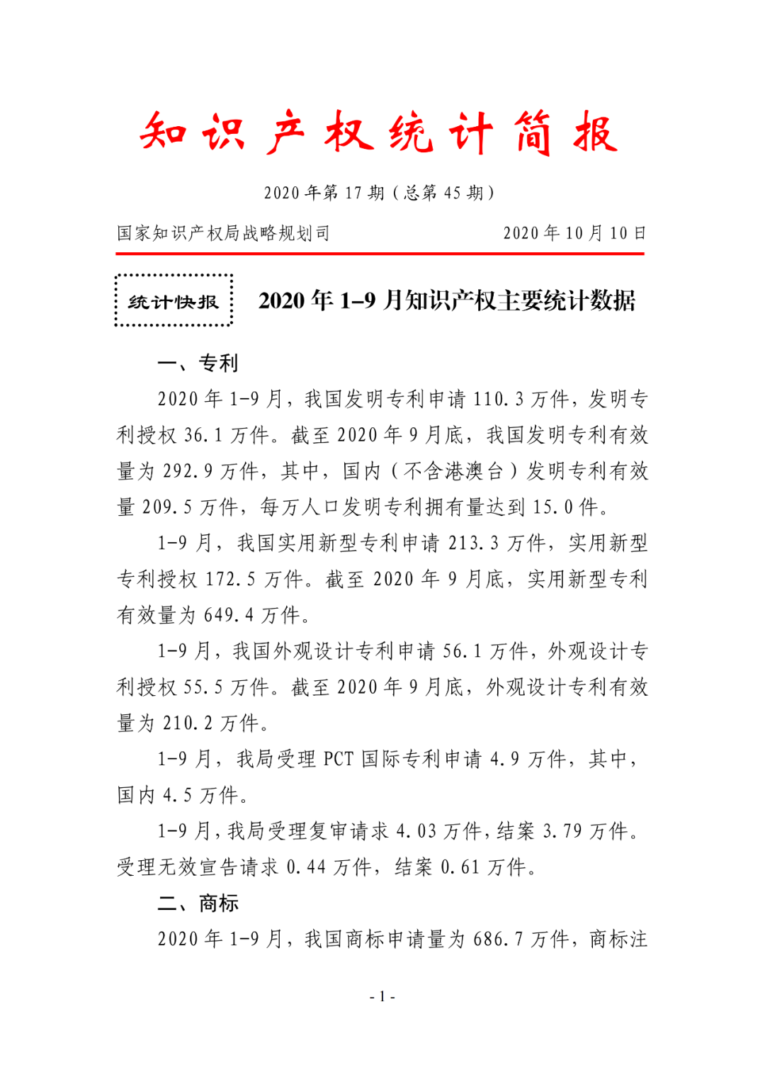 附:2020年1-9月知识产权主要统计数据