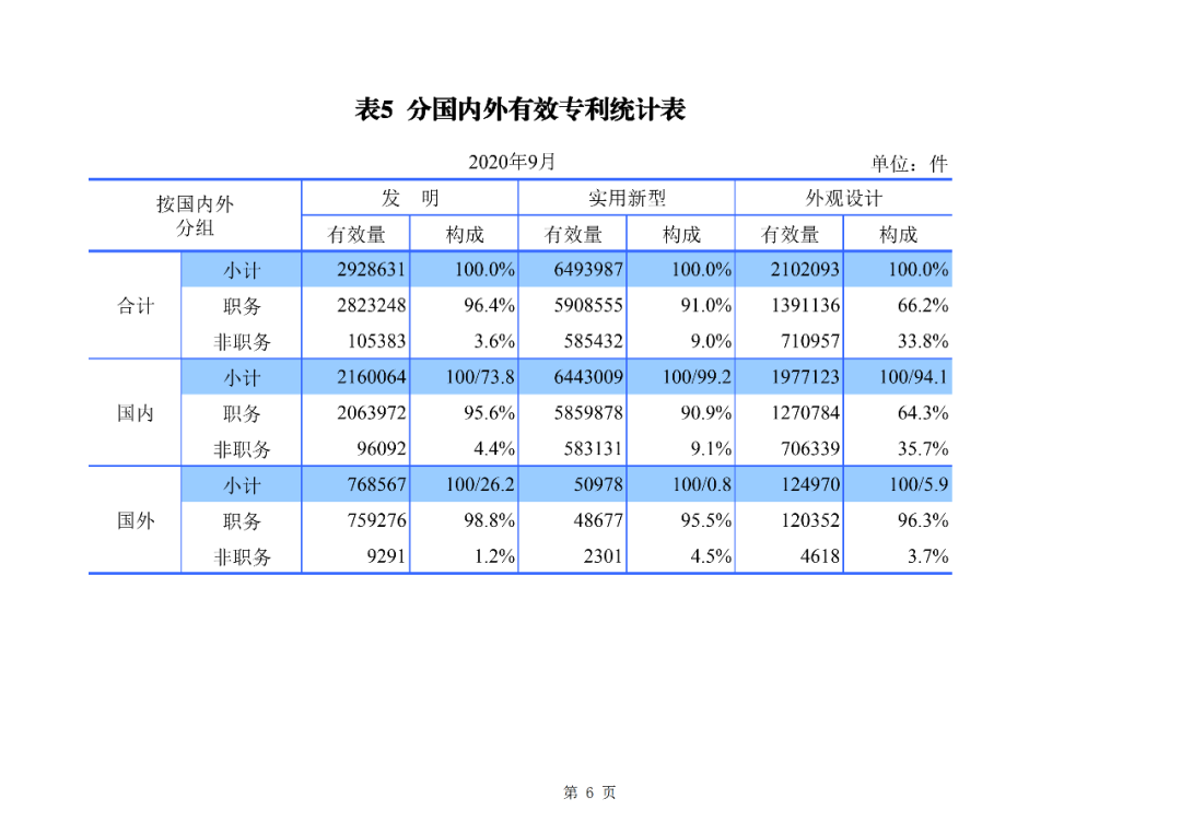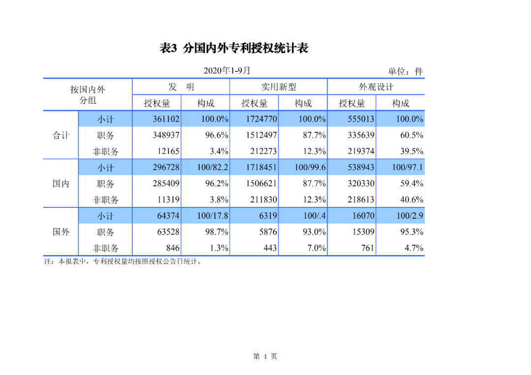 2020年1-9月,我国发明专利申请110.3万件,发明专利授权36.1万件。截至2020年9月底,我国发明专利有效量为292.9万件,其中,国内(不含港澳台)发明专利有效量209.5万件,每万人口发明专利拥有量达到15.0件。