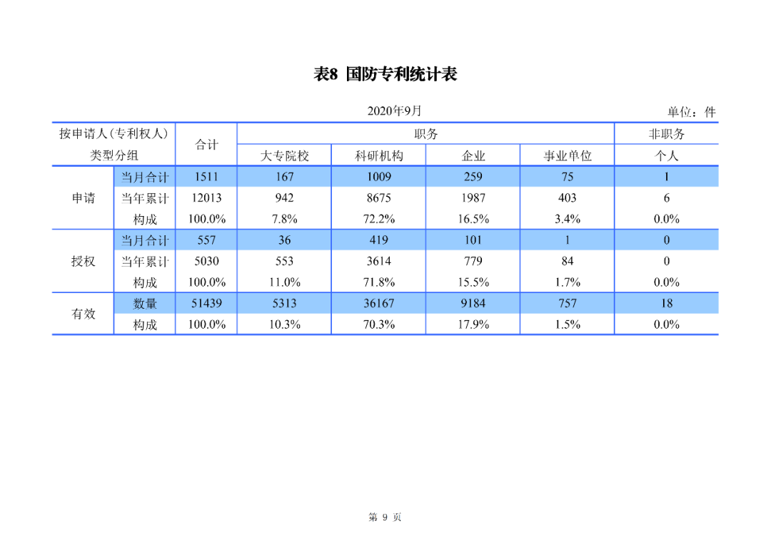 附:2020年9月国家知识产权局审查注册登记统计月报