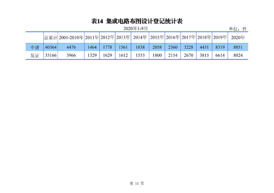2020年1-9月,我国集成电路布图设计登记申请8851件,发证8024件。